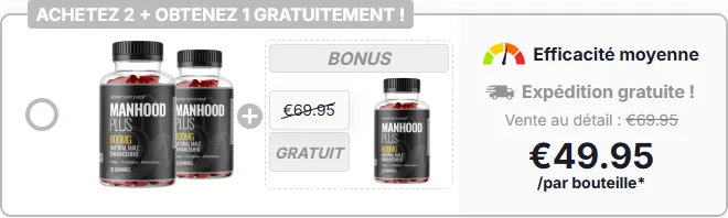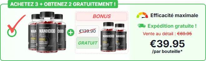 Agissez dès maintenant : procurez-vous le lot de 5 flacons à 39,95 € chacun avec livraison gratuite, disponible exclusivement sur le site officiel Manhood Plus Gummies.